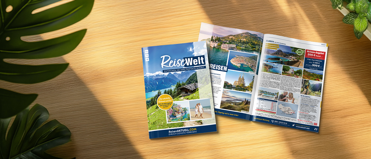 ReisenAKTUELL.COM steht für Qualität zu günstigen Preisen und bietet neben Eigenanreisen mit dem PKW auch Kreuzfahrten und Flugreisen an. Beliebte Reiseziele in Deutschland sind z. B. der Bayerische Wald, das Allgäu, der Schwarzwald und der Harz. Bei den Flugreisen erfreuen sich Urlaubsklassiker wie Mallorca, die Türkei oder Griechenland großer Beliebtheit. Aber auch die heimischen Strände wie die der Nord- oder Ostsee verbinden Reisende mit einem erholsamen Urlaub. Auf Hochseekreuzfahrten erwartet Sie unter anderem der Mittelmeerraum mit traumhaften Sandstränden und malerischen Buchten oder norwegische Fjorde in einer beeindruckenden Panorama Landschaft. Bei unseren Flusskreuzfahrten entdecken Sie Europa auf Donau, Rhein und Mosel.